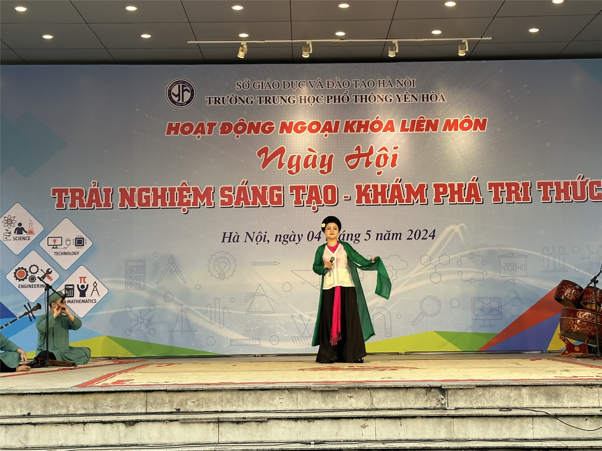 Sáng thứ 7 ngày 4/5, trường THPT Yên Hoà tổ chức hoạt động ngoại khóa liên môn - Ngày hội “Trải nghiệm sáng tạo - khám phá tri thức” năm học 2023 – 2024 ngay tại khuôn viên nhà trường. Chương trình do thầy cô 4 tổ chuyên môn Toán Tin, Văn Anh, Xã hội, Tự nhiên tổ chức thực sự là một ngày hội học vui, vui học. Các thầy cô hướng đến mục tiêu tạo điều kiện cho học sinh tìm hiểu bản sắc văn hoá dân tộc và đặc trưng các vùng miền; vận dụng kiến thức lí thuyết môn học vào thực tế cuộc sống, phát triển tư duy, hoàn thiện các năng lực, phẩm chất.