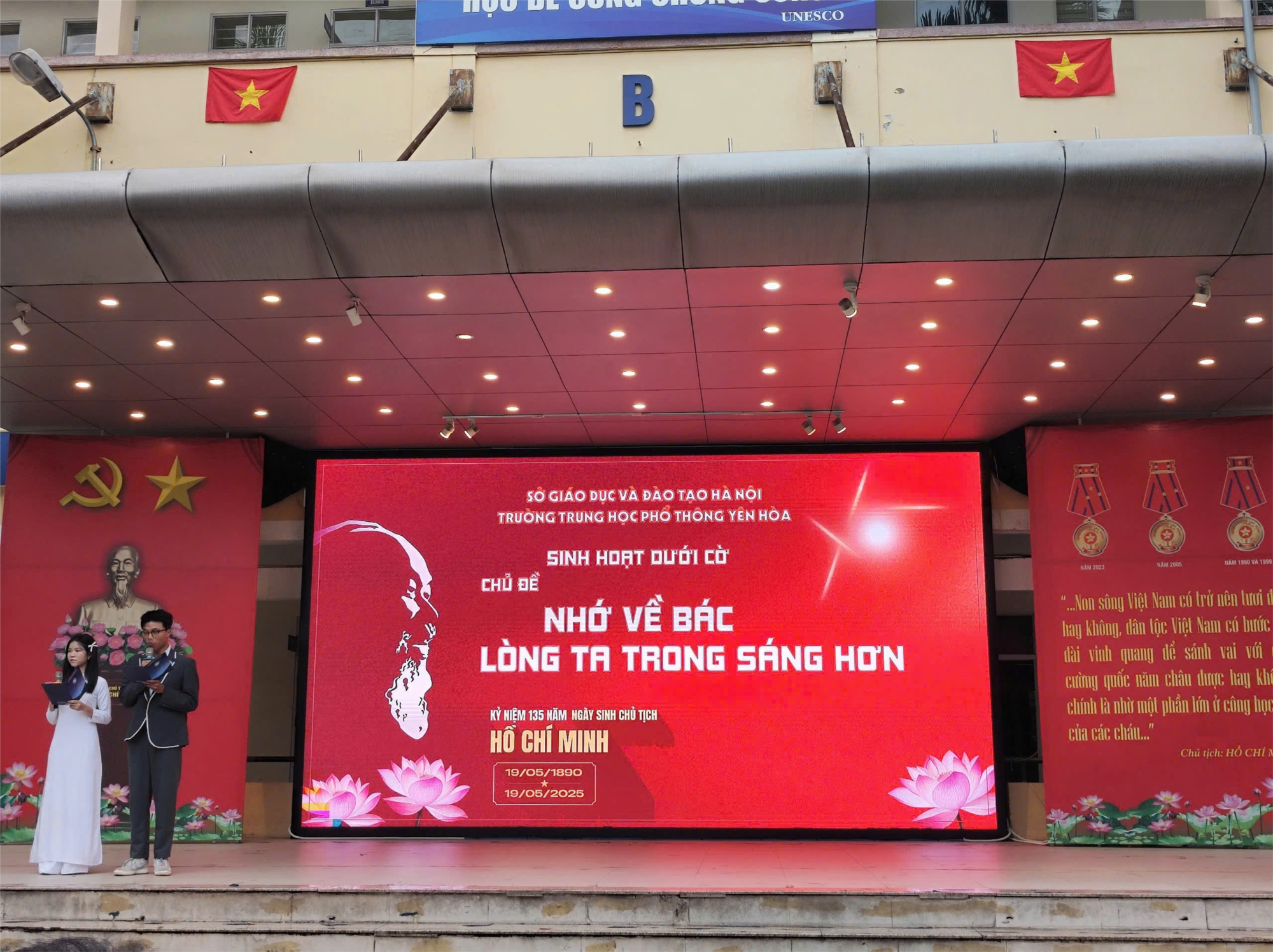 Tháng Năm lại về, mang theo những tia nắng dịu dàng và hương sen ngan ngát trên khắp mọi nẻo đường đất nước. Trường THPT Yên Hòa đã tổ chức buổi sinh hoạt dưới cờ lắng đọng cảm xúc hướng về sự kiện thiêng liêng – kỷ niệm 135 năm ngày sinh Chủ tịch Hồ Chí Minh kính yêu, vị Cha già của dân tộc Việt Nam, người đã sống một đời vì nước, vì dân, vì lý tưởng cao đẹp.